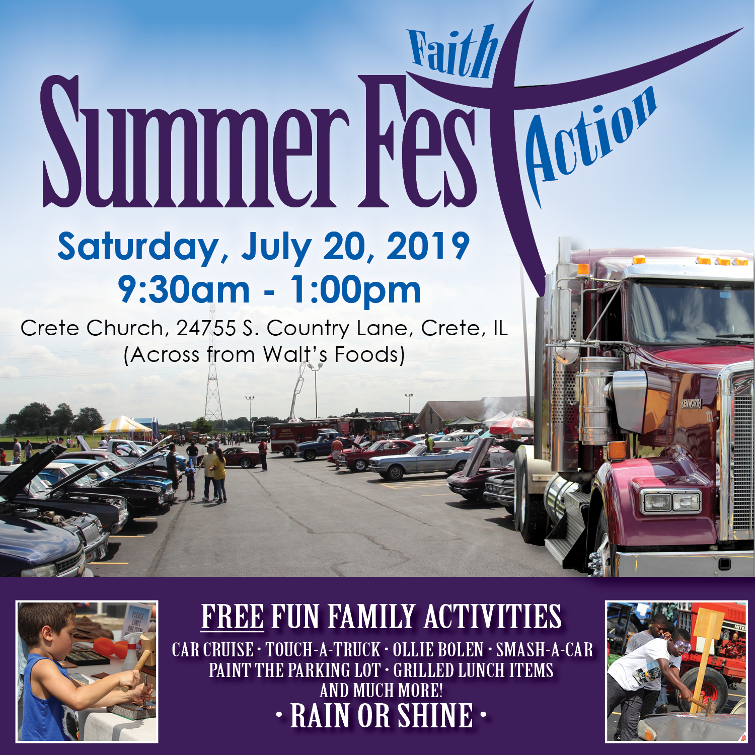 A fun free day for the entire family! Car cruise, touch-a-truck, bounce house, great food, and more!